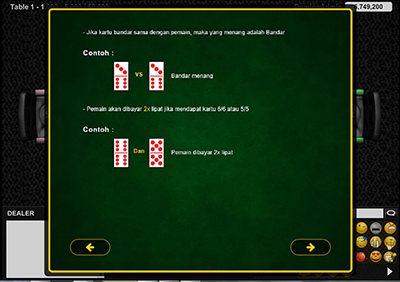 - Pemain no.1 memiliki jumlah kartu yang sama dengan Bandar Maka Pemain no.1 kalah dari Bandar (Jika hasil seri, maka bandar menang)